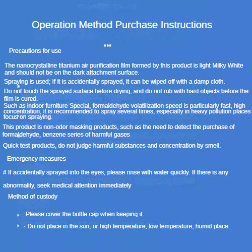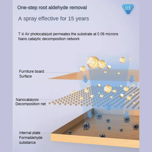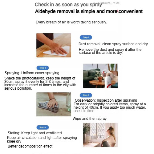 This product is an enzyme made from plant protein that has been cut into chains. It can powerfully adsorb and calcify molecules found in various organic solvents, effectively catalyzing the elimination of toxic odors such as formaldehyde, toluene, xylene, and TVOC. It is a one-time treatment with long-lasting results. Simply spray or apply the liquid onto the surface of the item that produces toxic odors. The product is non-toxic, odorless, and colorless after drying, eliminating concerns about toxicity risks, secondary pollution, or staining during use.