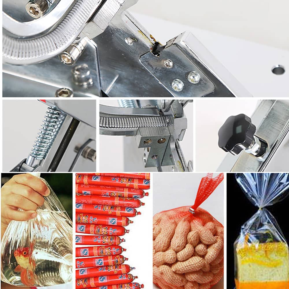Sausages, plastic bags, edible mushrooms, mesh bag sealing. The machine occupies a small area.