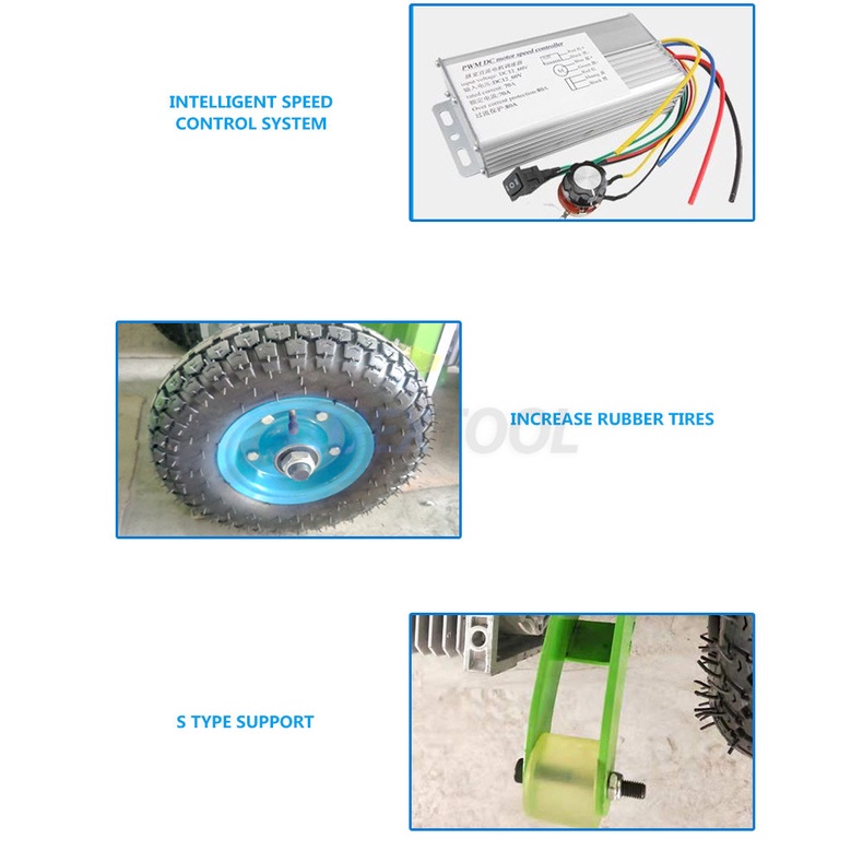 Dengan waktu siaga selama 6-8 jam, kereta sorong ini dilengkapi dengan baterai 48V 16A dan daya 850W, mampu menahan beban hingga 250kg. Ukurannya 58 * 115cm (dapat diperluas hingga 165cm), memberikan fleksibilitas saat membawa barang-barang besar dan berat.