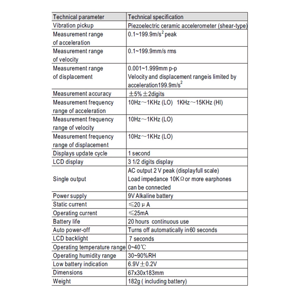 Measurement range of acceleration:0.1~199.9m/s² peak