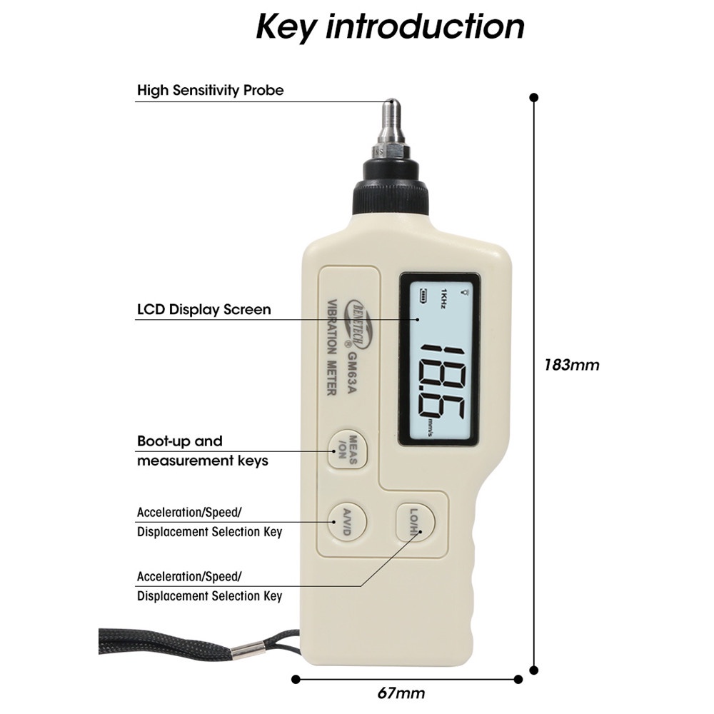 High Precision Vibration Meter GM63A Handheld Digital Vibration Analyzer Device Probe Analizador De Vibraciones Vibrator Tester