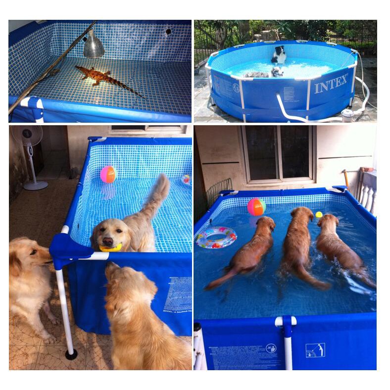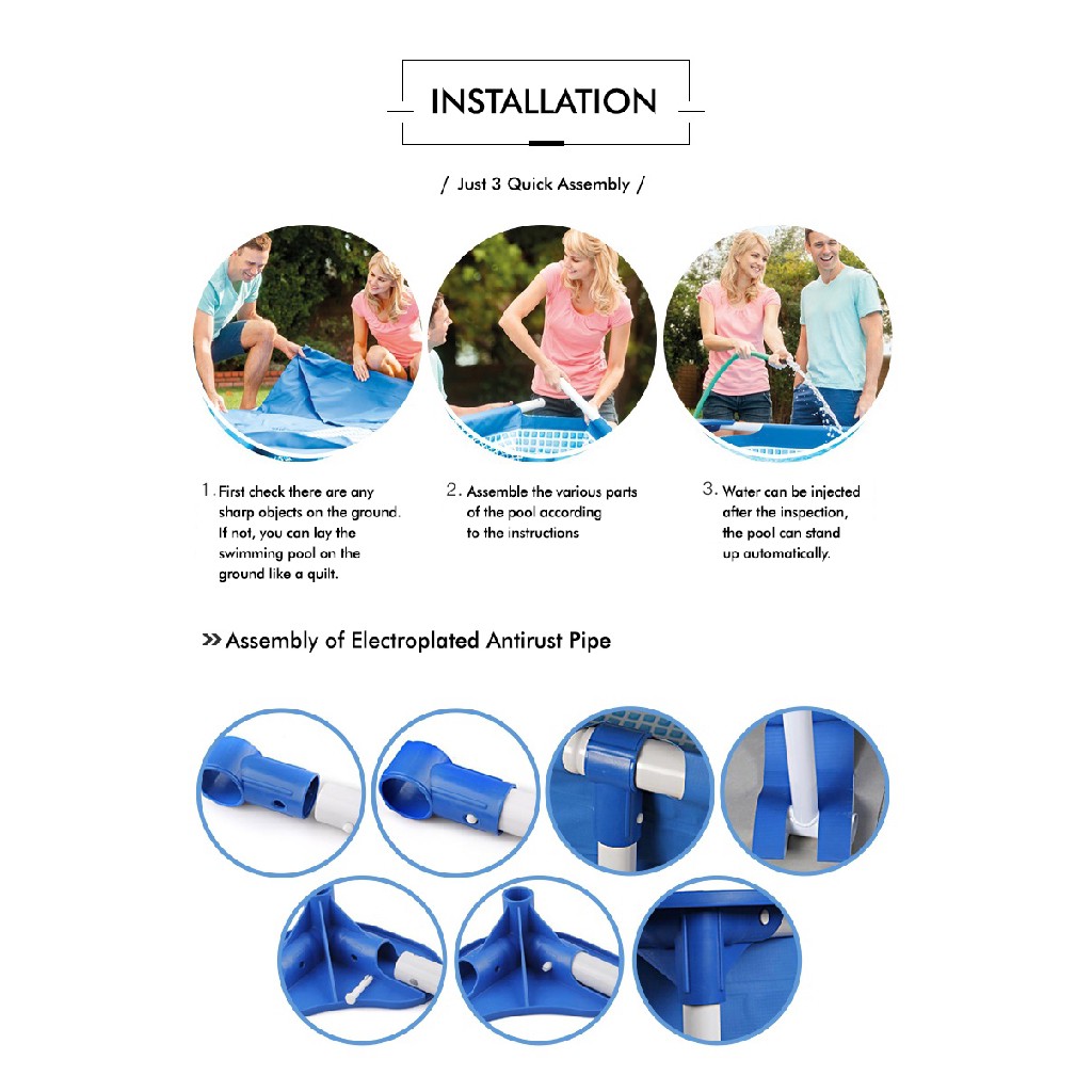Product Details: Brand: INTEX Dimension: 450cm x 220cm x 84cm (4.5 METER POOL) (1883 Gallon) Brand: Bestway Model: 56405 Material: anti-rust metal bracket, imported PVC Size: 400CM * 211CM * 81CM Capacity: 5700 liters -Boleh diguna sebagai kolam berenang atau akuarium. Amat tahan (teknologi US) - Best above ground pool. Intex rectangular pool is a great family pool, where kids can swim and adults can lounge. - Intex easy set pool can take a mere half-hour to set up. - The swimming pool has metal supports (which are coated with a rust-resistant coating) to give it ultimate stability.Swimming pool set comes with SUPER-TOUGH laminated walls are a gorgeous blue color to reflect your crystal-clear water.
