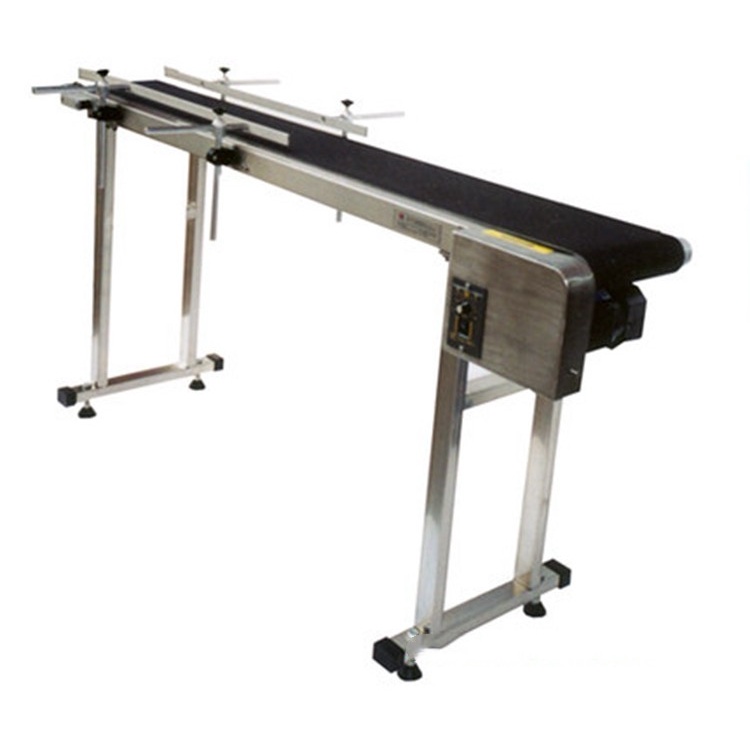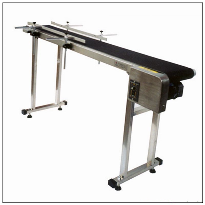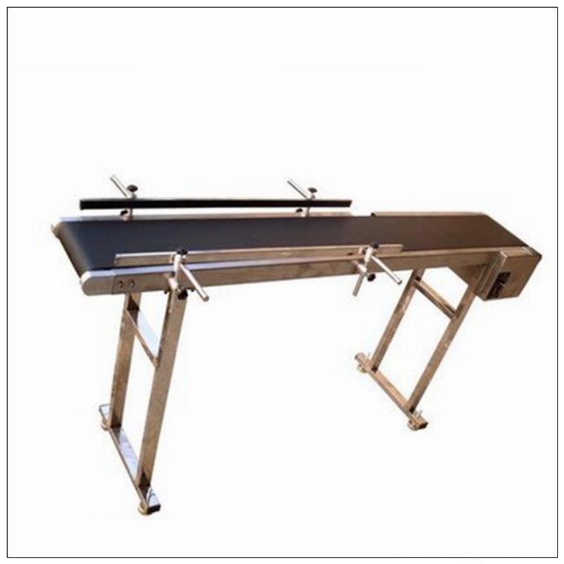 The code machine dedicated conveyor is all made of stainless steel, with automatic speed and steady speed circuit electronic governor with the high quality of domestic motor, with high stability, high anti-static PVC conveyor belt industrial belt, has the high anti-static ability. Widely used in medicine, cosmetics, food, electronics and other industries transmission and printing.