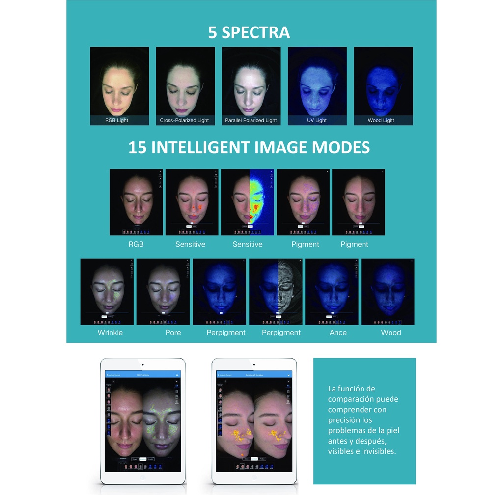 5 spectra - RGB, cross-polarized, parallel-polarized, UV and Wood’s lighting.
