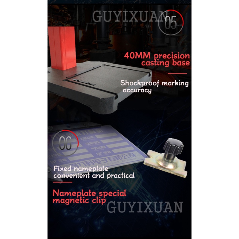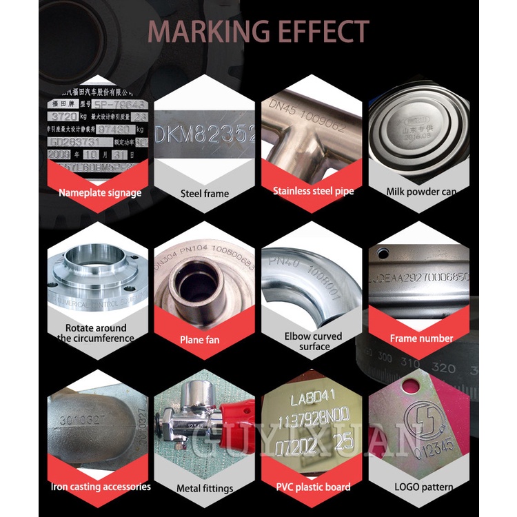 Applicable workpieces: all kinds of metal nameplates, metal parts, all kinds of pipe fittings, etc.