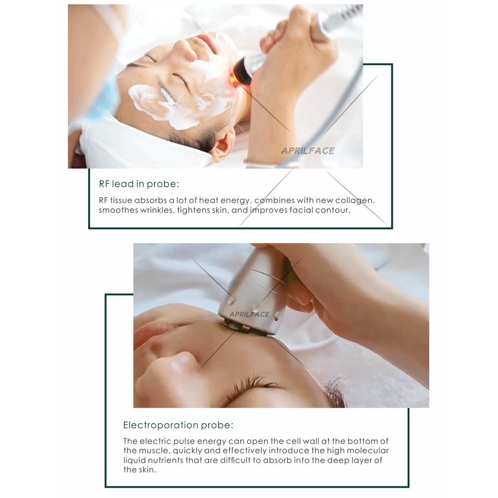 5.RF skin lifting handle acts on the collagen in the dermis to promote the synthesis of collagen by heating and firm the skin. However, micro current acts on the muscle of subcutaneous tissue, which increases collagen, tightens skin and promotes lymphatic detoxification.