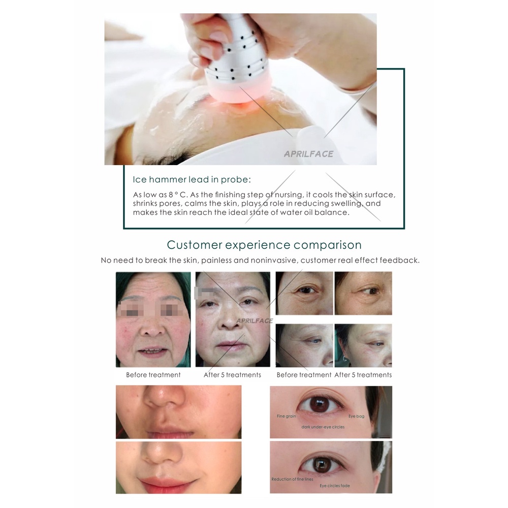 7.Cold Hammer handle: shrink the skin pore, lock the moisture, make face skin tight, smooth and delicate, strengthen collagen, enhances elasticity.