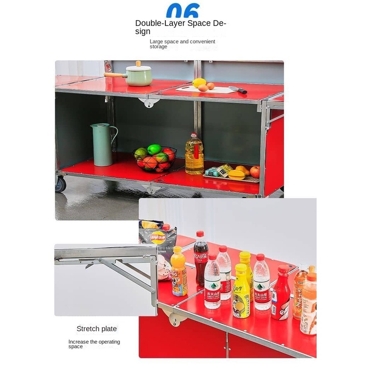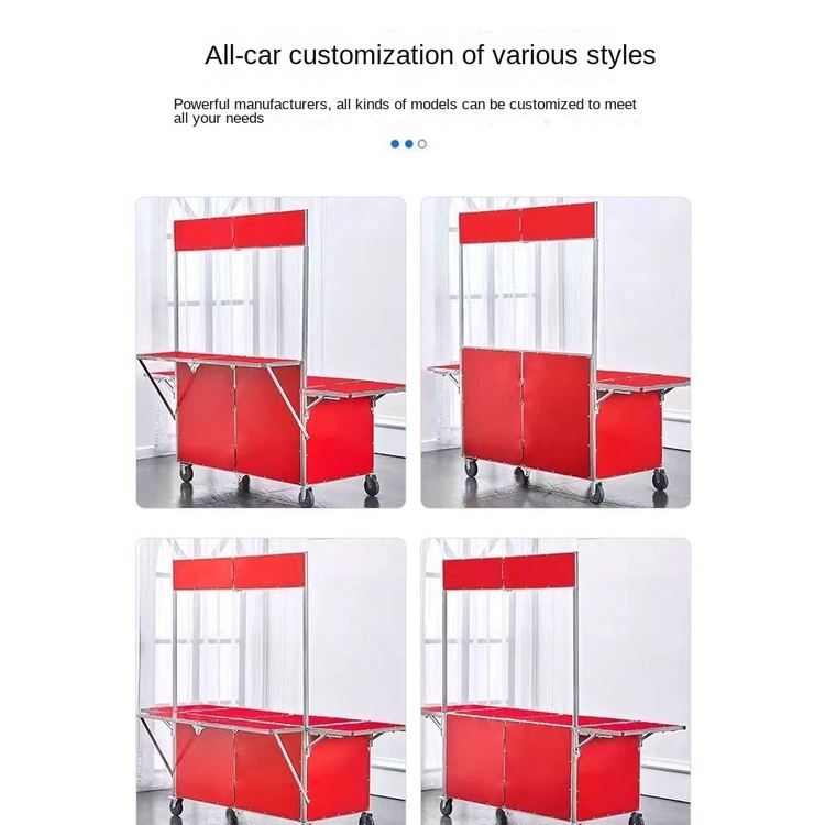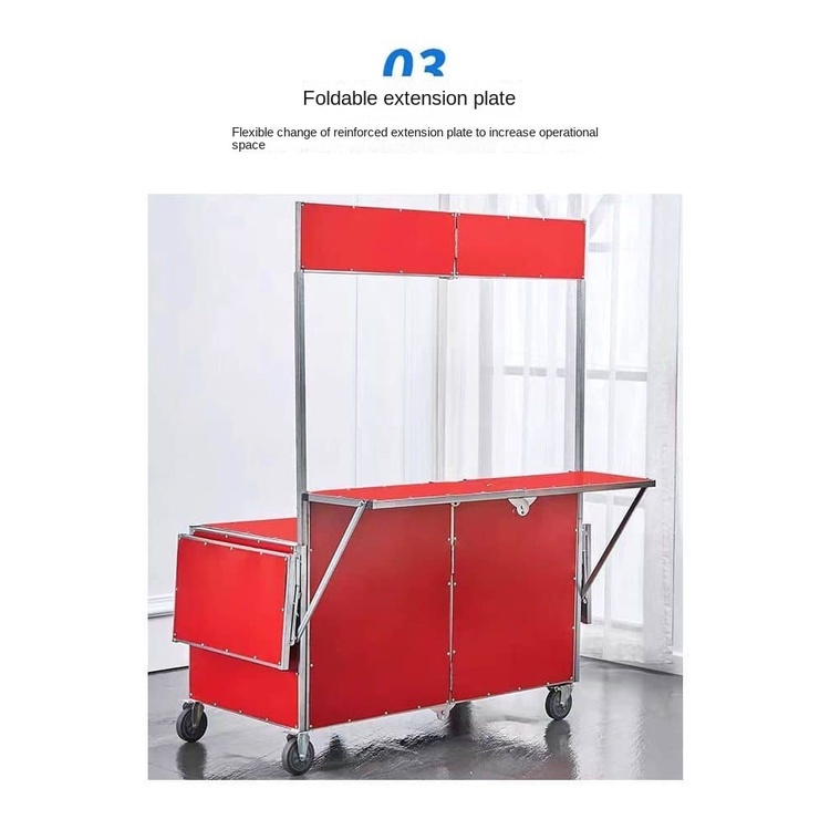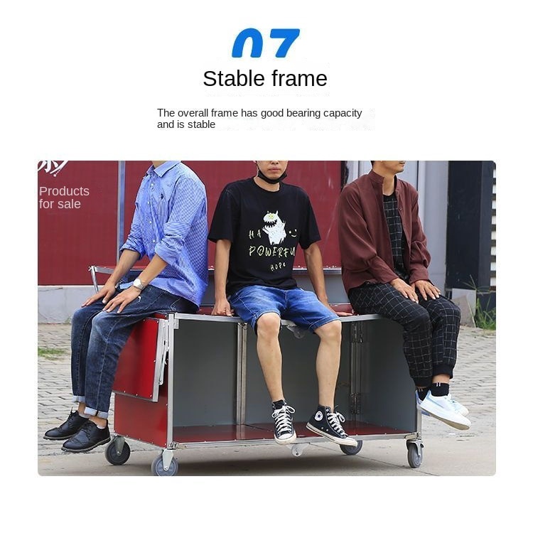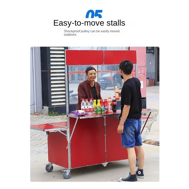 3. 灵活布局:推车的设计考虑了摊位布局的多样性,通过可调节的组件,您可以轻松调整摊位的空间分配和摆放方式。