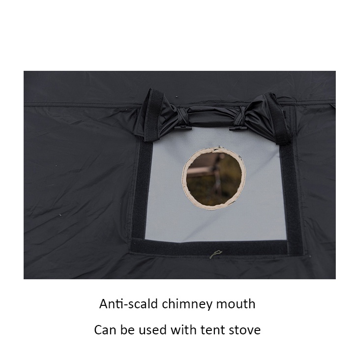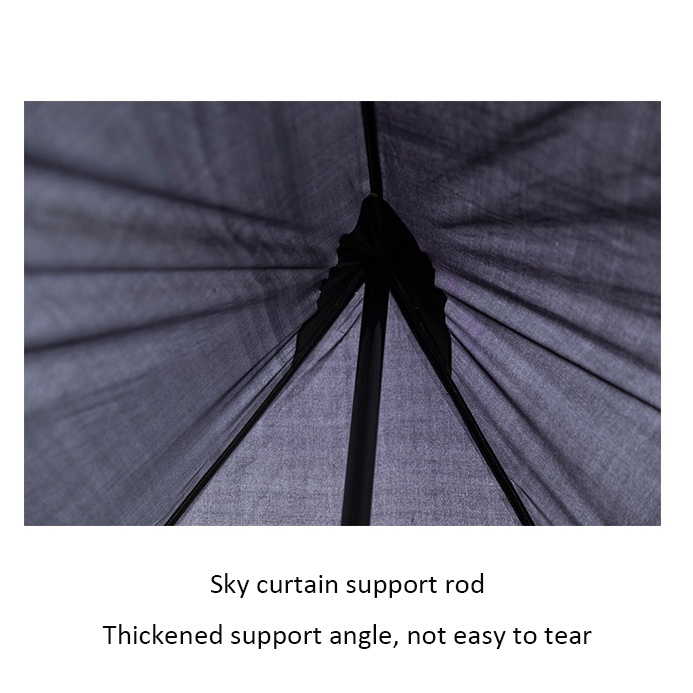 * Open and flatten the outer tent and support rod, and then fix the corner drawstring with ground nails.