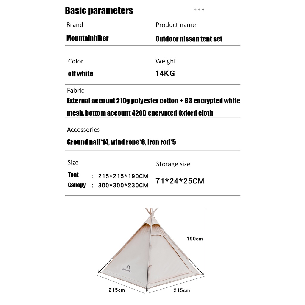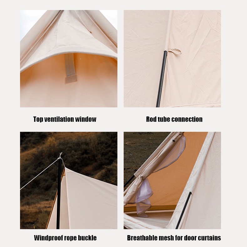 ● Outer Tent Material: 210g Polyester Cotton + B3 Encrypted White Mesh