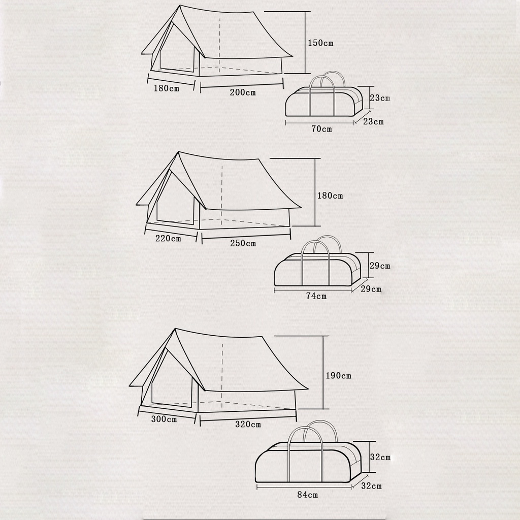 Quick delivery from stock, please contact customer service for wholesale - Follow us you can get unique vouches only for fans, which is more favorable when used on top of each other. - Please note that all items are QC before shipping. - However, if the item got damaged during shipping or had some manufacturer defects, please do not hesitate to contact us. - We would like to make things right, and provide you with a solution that makes you smile. -------- Description -------- ["S" 2m x 1.8m x 1.5m Hut Tent] ● Storage Size: 70cm * 22cm * 22cm ● Gross Weight: 9500g ● Material: 210g waterproof TC polyester cotton fabric ● Design: Multi-PPL * FREE: Storage Bag ["M" 2.5m x 2.2m x 2m Hut Tent] ● Storage Size: 70cm * 25cm * 25cm ● Gross Weight: 13400g ● Material: 210g waterproof TC polyester cotton fabric ● Design: Multi-PPL * FREE: Storage Bag ["L" 3.2m x 3m x 2m Hut Tent] ● Storage Size: 82cm * 26cm * 26cm ● Gross Weight: 17500g ● Material: 210g waterproof TC polyester cotton fabric ● Design: Multi-PPL * FREE: Storage Bag Highlights: ● Durable ● Waterproof and sunscreen ● Small and light Package Include: - 1 x Storage Bag - 2 x Canopy Pole - 8 x Wind Ropes - 8 x Ground Nail