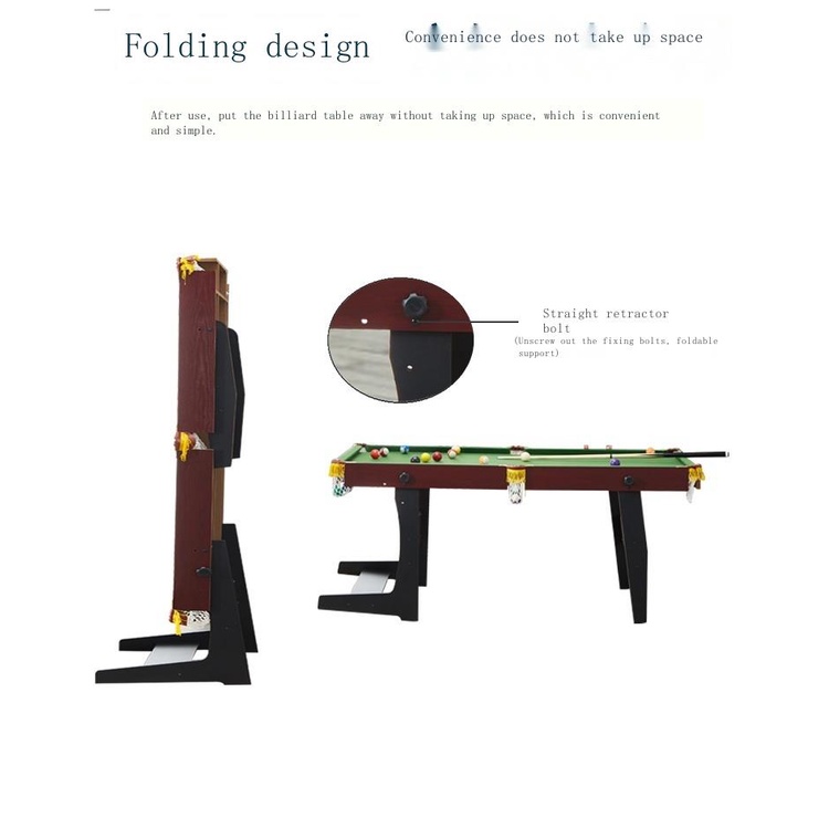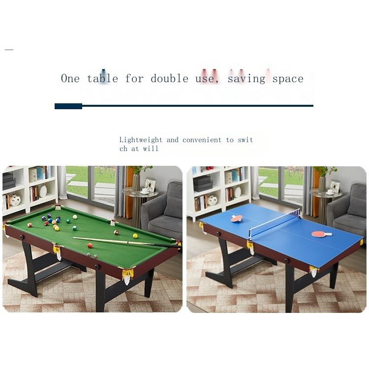 This game table is not just a pool table, but also an easy-to-convert table tennis table, allowing you to enjoy two different game experiences at home. Made with high-quality materials, it is durable and stable, ensuring a smooth and stable gaming experience. Moreover, its folding design makes it easy to store and transport, taking up minimal space and making your life more convenient.