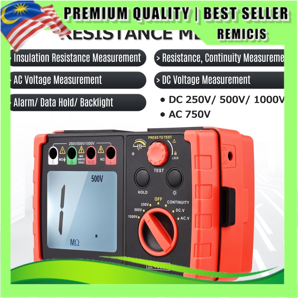 Multifunction Insulation/Continuity Tester GT5307A DC 250V/500V/1000V AC 750V Digital Display Insulation Resistance Meter Kit with LCD Backlight