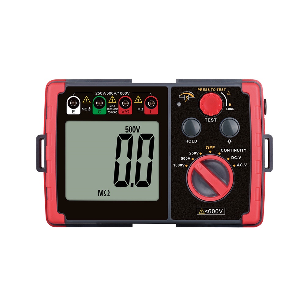 This instrument applies DC voltage converter with low loss, high variation ratio, and inductive energy storage, which can convert 9V voltage to 250V/1000V DC voltage; it applies digital electric bridge to measure insulation resistance; it has functional characteristics of portability, wide measuring range, backlight display, and data holding; it can measure electric supply as well. When using straps, the operator can operate the instrument with both hands. The instrument has a fashionable appearance and stable performance. It is suitable for measuring electrical machinery, cable, electromechanical equipment, telecom equipment, electric power facilities and other insulation resistance.