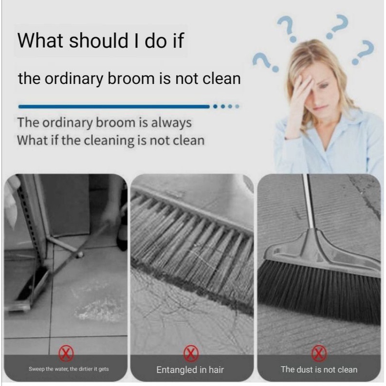 『Korean black technology magic broom, weighs only 180 grams, the lightest in history, bending mechanics, angle of 180 degrees to fit the ground, non-sticking hair, wet and dry, both as a mop, and as a broom, super easy to clean, water rinse Rinse it clean, you don't even need to wring water. Because it neither absorbs water nor oil, it is so "out of silt without staining" and is your best helper for cleaning."』