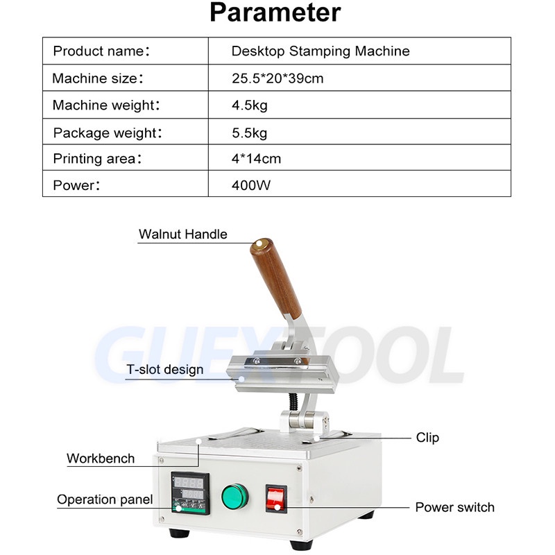 Brand Name: GUYX Product Name: Hot Stamping Machine Size: 25.5*20*39cm Model: WT-90ZM Packing weight: 5.5kg Net weight: 4.5kg Product power: 400w