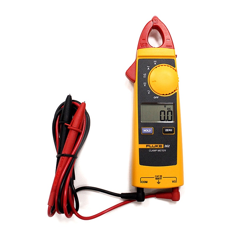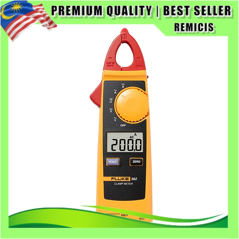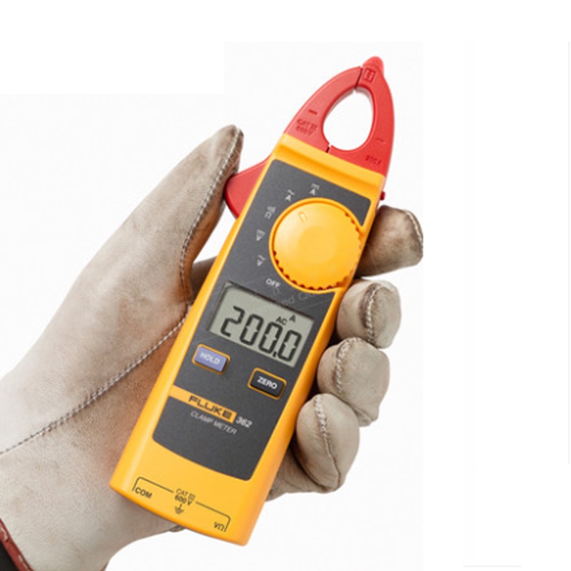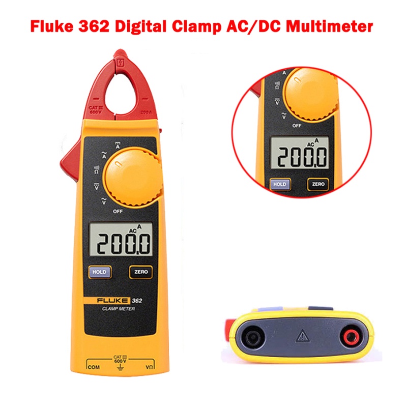 Original Fluke 362 AC and DC Clamp High Precision Universal Ammeter Clamp Meter Multi-Function Precision Clamp Meter Features: 1.VoltAlert trade; technology for non-contact voltage detection; 2.AutoVolt automatic AC/DC voltage selection; 3.Low input impedance: helps prevent false readings due to ghost voltage; 4.Large white LED backlight to work in poorly lit areas 5.True-rms for accurate measurements on non-linear loads 6. Measures 10 A (20 A overload for 30-seconds) 7. Resistance, continuity, frequency and capacitance 8. Min/Max/Average with elapsed time to record signal fluctuations 9. Compact ergonomic design for one-handed operation 10. Compatible with optional magnetic hanger (ToolPak trade;) for hands-free operation 11. CAT III 600 V safety rated Specifications: Fluke 362 Clamp Meter: Range Resolution Accuracy AC current 200A 0.1A 2% plusmn; 5 digits (45-65Hz) 2.5% plusmn; 5 digits (65-400Hz) DC current 200A 0.1A 2% plusmn; 5 digits AC voltage 600 V 0.1 V 1.5% plusmn; 5 digits (45-400Hz) DC voltage 600 V 0.1 V 1% plusmn; 5 digits Resistance 300/3000 Omega; 0.1/1 Omega; 1% plusmn; 5 digits Continuity lt;=70 Omega; General Specifications Size (LxWxH) mm 205 times; 60 times; 22 Clamp opening 18 mm Weight 196 g Safety rating CAT III 600 V Warranty 2 years Package Included: 1 x Digital Multimeter 1 x Test Leads 1 x User's manual