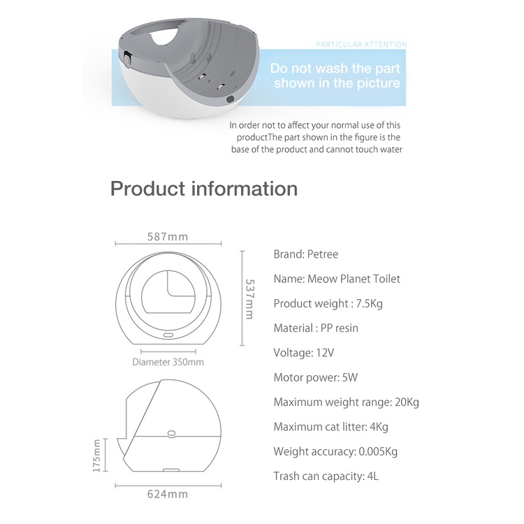Petree automatic self-cleaning cat litter box cat sandbox closed tray toilet rotation training removable bedpan smart cat litter box