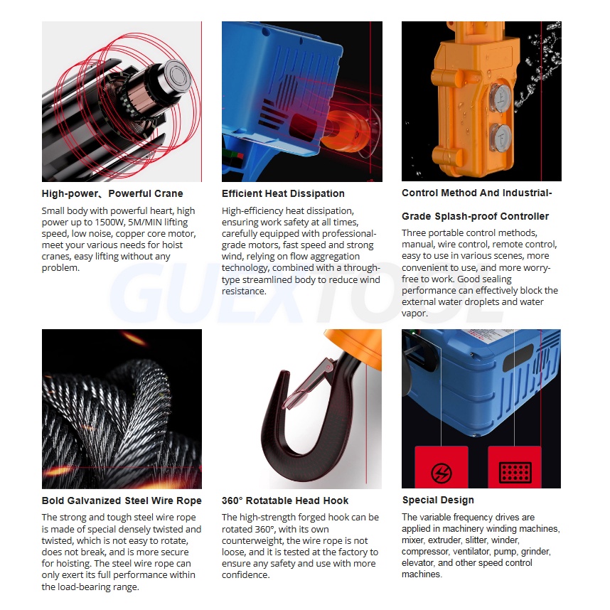 The machine can be used vertically, horizontally, diagonally or upside down. When in use, the upper hook, the fuselage, and the lower hook are on a horizontal straight line, which ensures the stability of the supporting structure and avoids the occurrence of safety accidents.