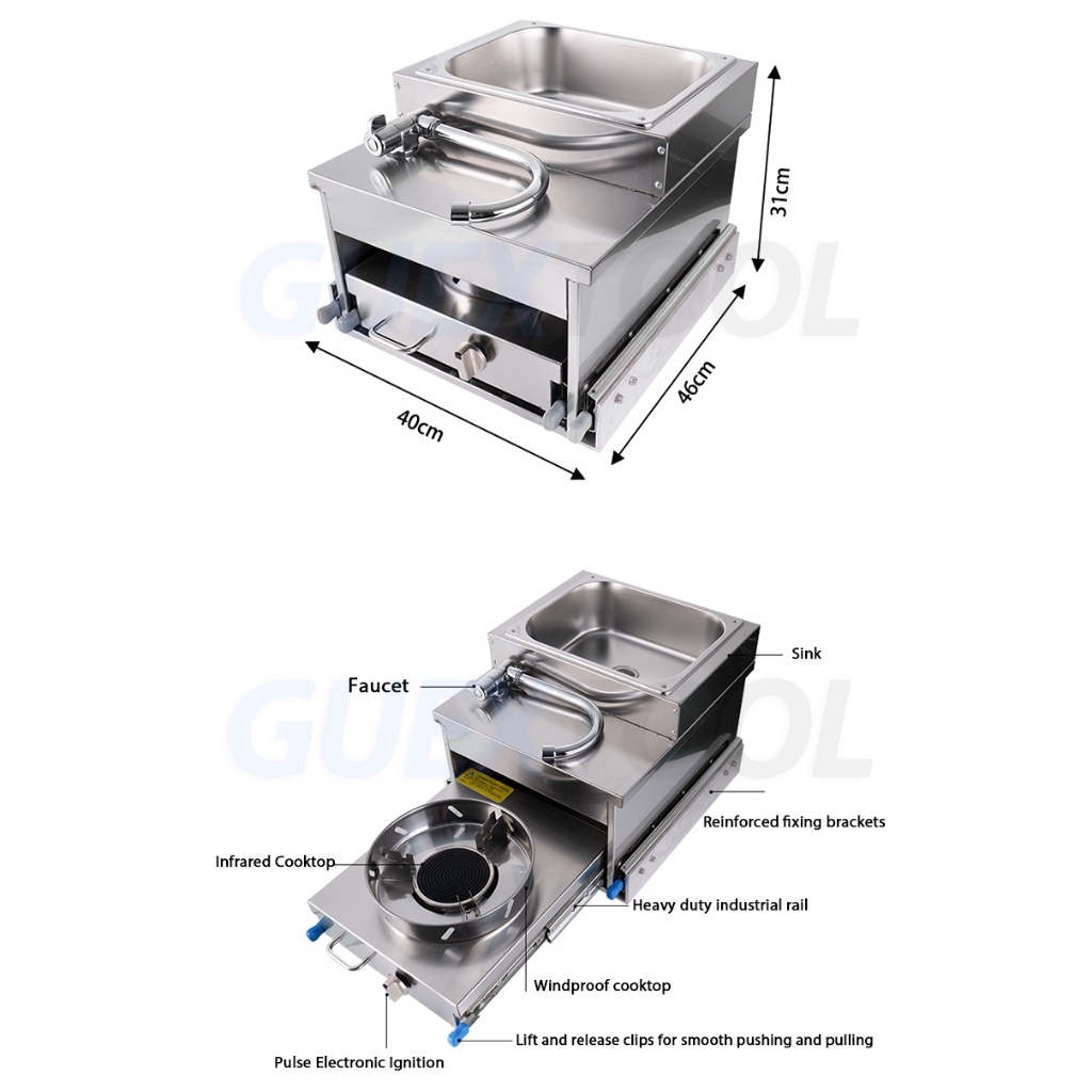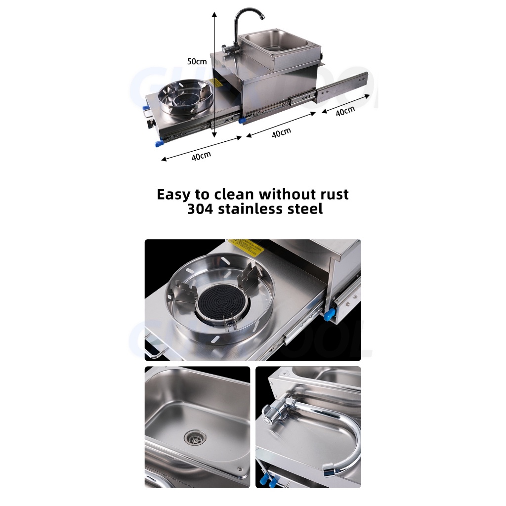 RV Stainless Steel Sink With Gas Stove Pull-out Slide Out Kitchen For Camper Trailer Caravan Motorhome