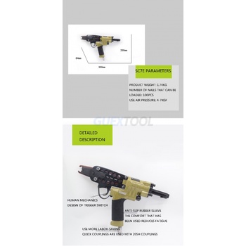 Brand Name: GUYX Name: Pneumatic nail group cage machine Product number: GJ00335 Air pressure: 0.5-0.8MPa Use air duct: ≥8mm Use C nail: length 24mm, width 12mm C nail diameter: 1.8mm Packing weight: 3KG Packing size: 20*15*10