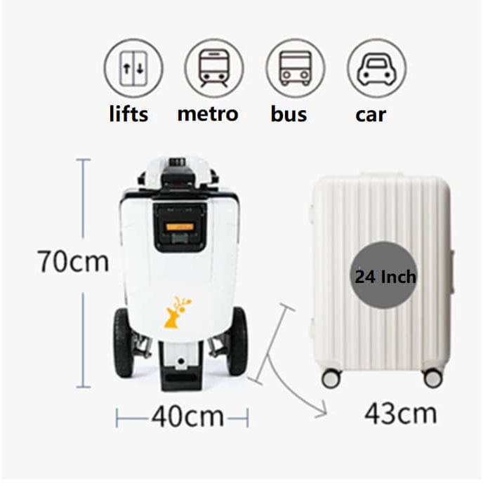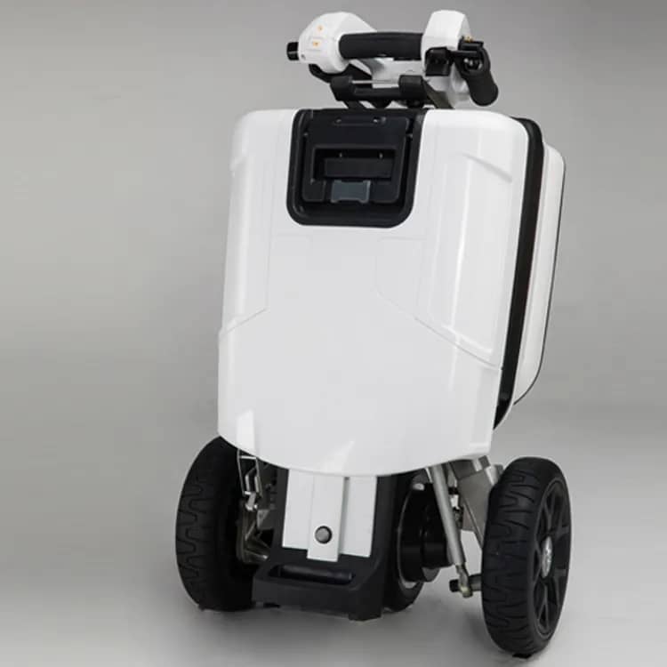 This deluxe 3 wheel folding electric mobility scooter is focused on making life easy and convenient. Now you can say goodbye to traffic jams with our innovative new design and technology. When folded,the scooter can be folded to a piece of luggage case,which can be put into the trunk of your car or in the overhead cabin of your flight seat. And you can take folded the scooter to your home, your office, on the subway, to the park or where ever you like.