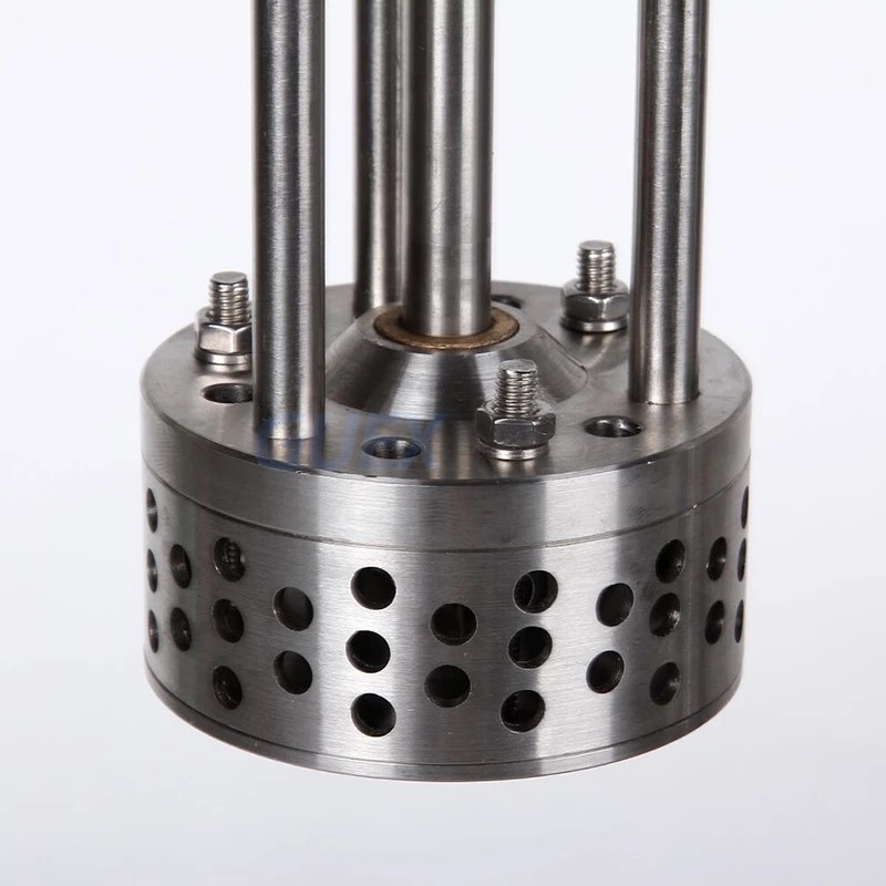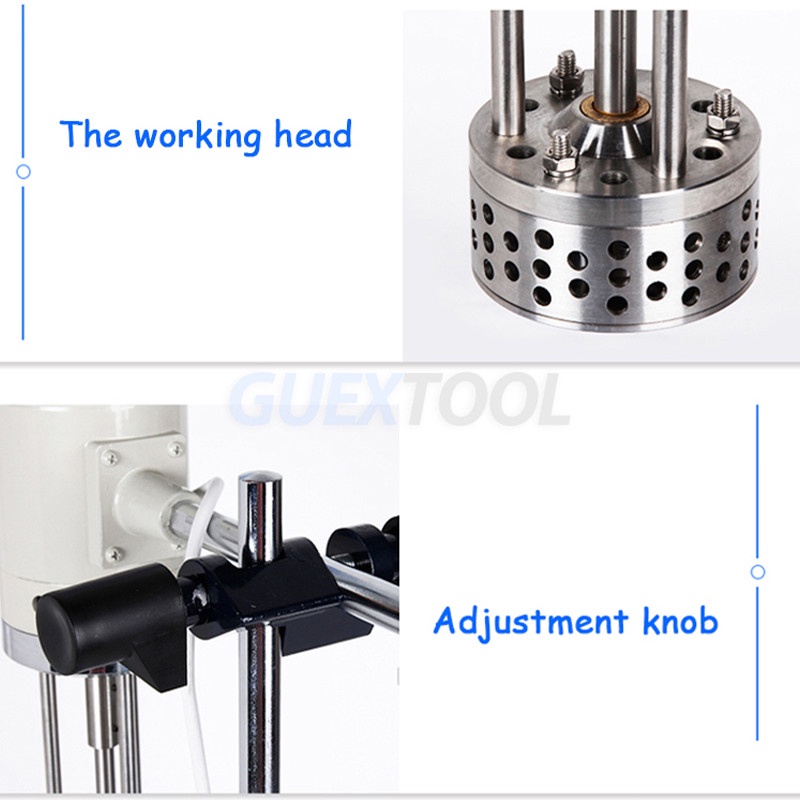 This machine is equipped with three different types of stator working heads (small hole, medium hole, waist round hole), customers can replace the stator working head according to different needs to achieve the effect of homogeneous emulsification.
