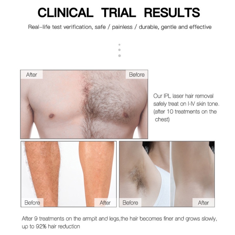 ①There have been numerous clinical studies conducted that demonstrate the safety and effectiveness of IPL for hair removal. Due to this fact, it has become an extremely popular option for a safe and effective method of hair removal at home and in clinics.