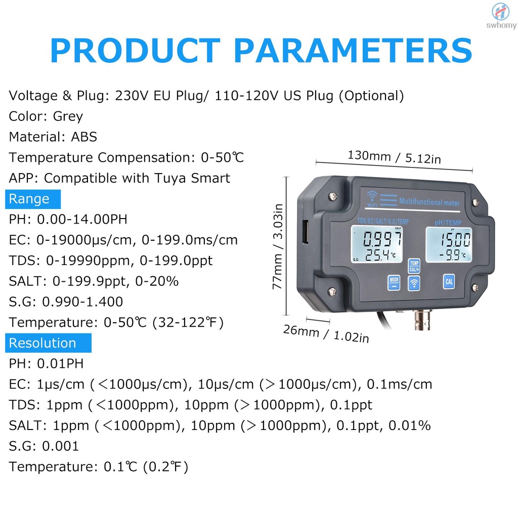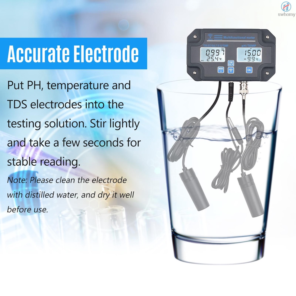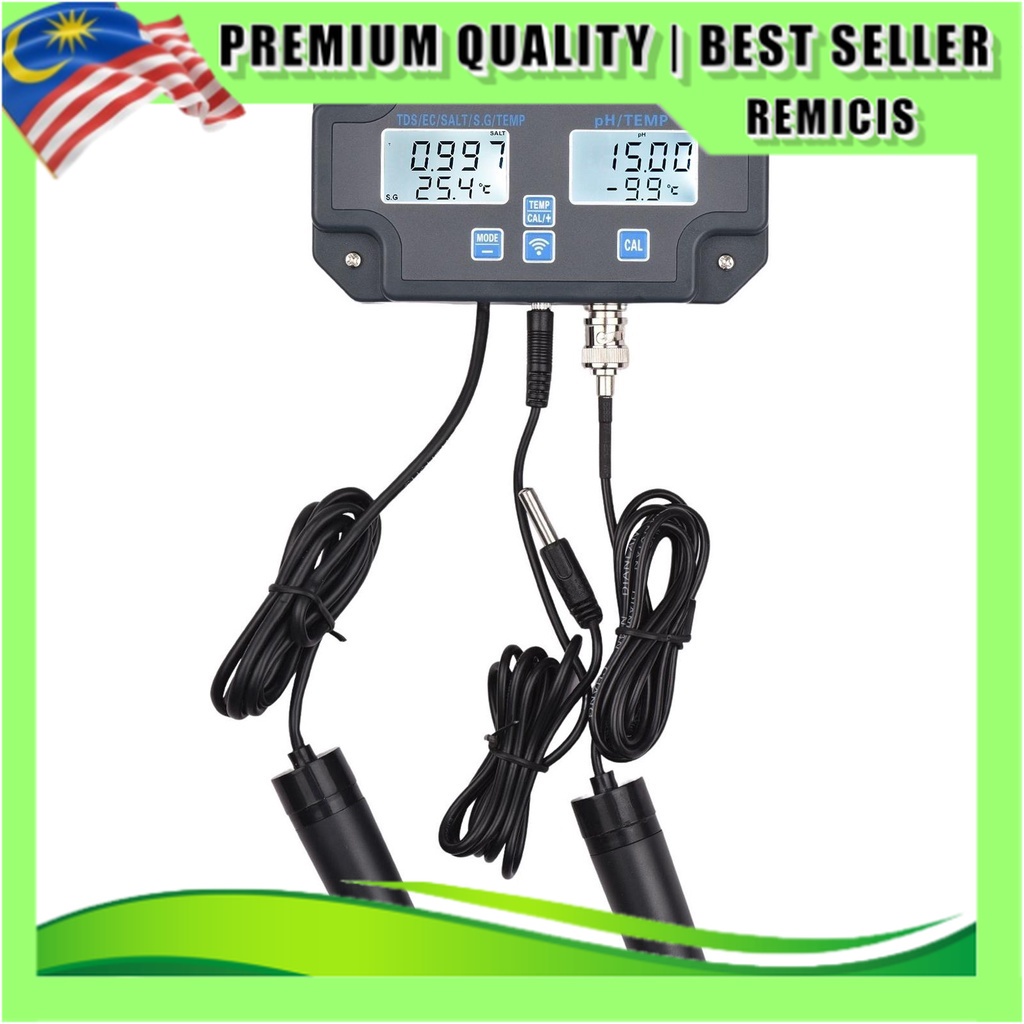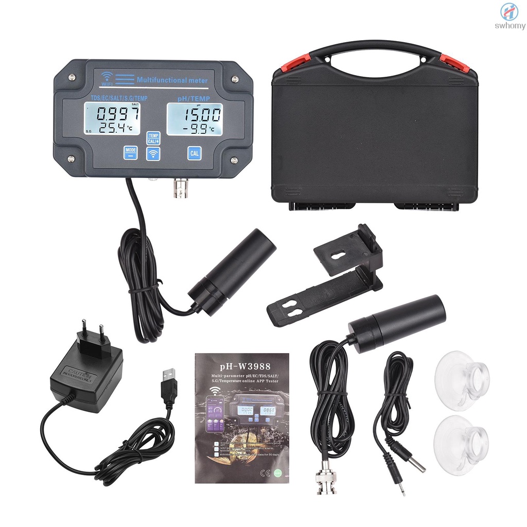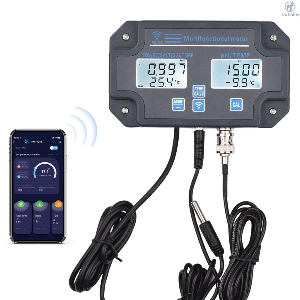 Wifi Digital Water Quality Tester Wall Mounted 6 in 1 Water Analyzer PH/ EC/ TDS/ SALT/ S.G/ Temperature APP Remote Moni