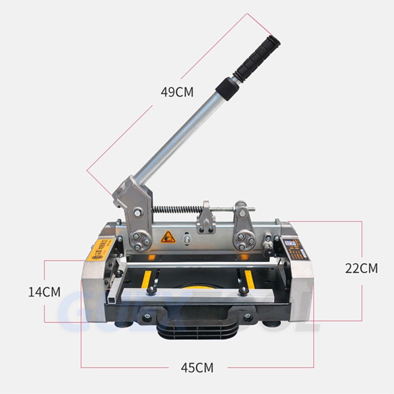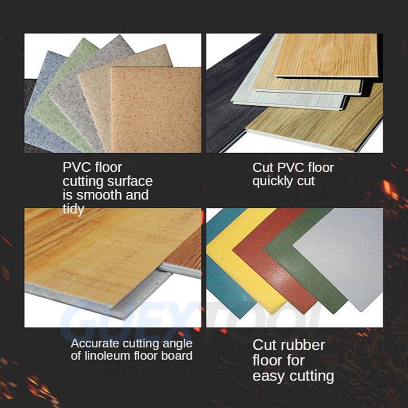 Name: Manual cutting machine Model: CBFC-330A Cutting length: 330mm Maximum cutting depth: 10mm Longitudinal cut throat diameter: 130mm Blade: 330*30*3mm Suitable for all kinds of: PVC plastic floor WPC wood plastic floor SPC stone plastic floor